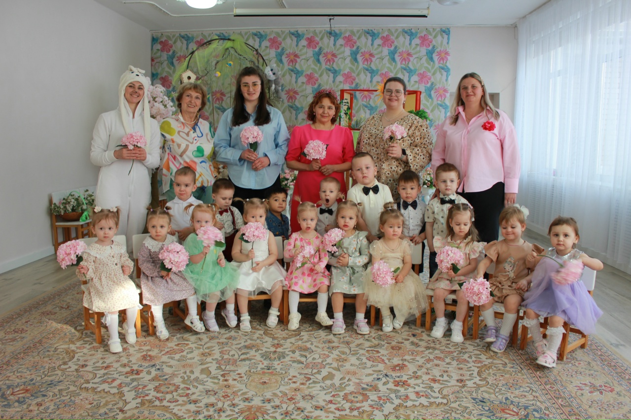 В наших ясельных группах «Топотушки», «Звездочки» и «Бусинки» прошёл самый первый и трогательный утренник, посвящённый 8 Марта!